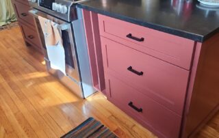 Kitchen Cabinet Painting Project in Yarmouth, ME: Brick Red and White Elegance