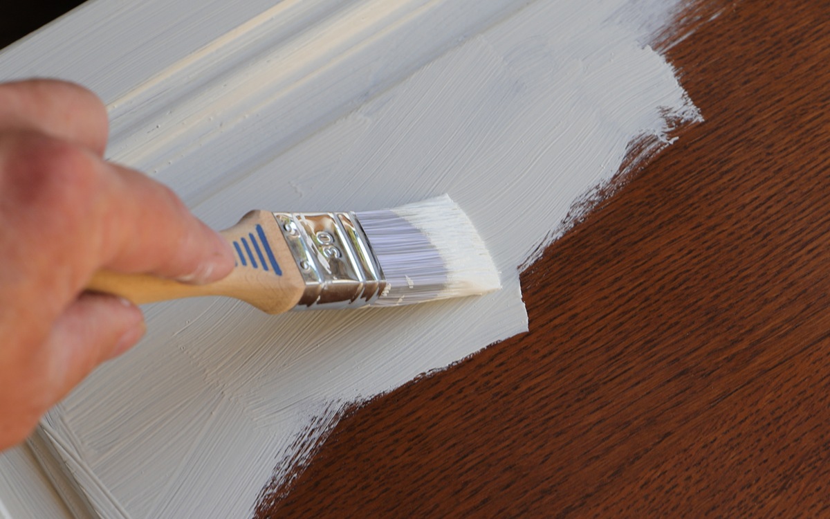 Paint sits on top of the wood surface. It creates an opaque layer that completely covers whatever is underneath, whether that’s the original wood grain, old stain, or previous paint. This is why paint is so popular for kitchen makeovers. You can take dark, dated oak cabinets and turn them bright white without any trace of what was there before.