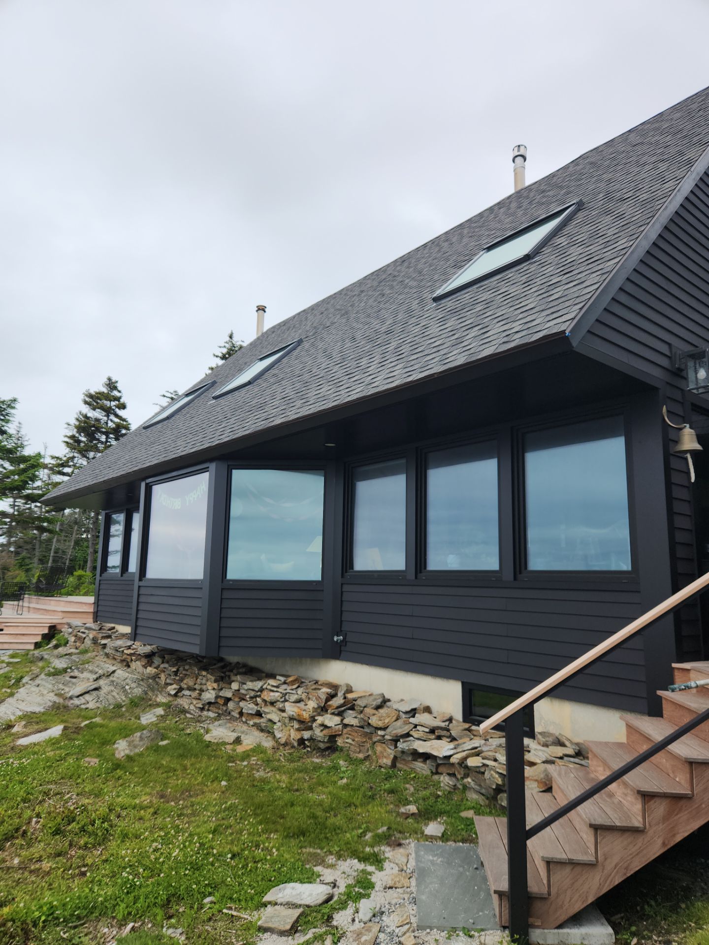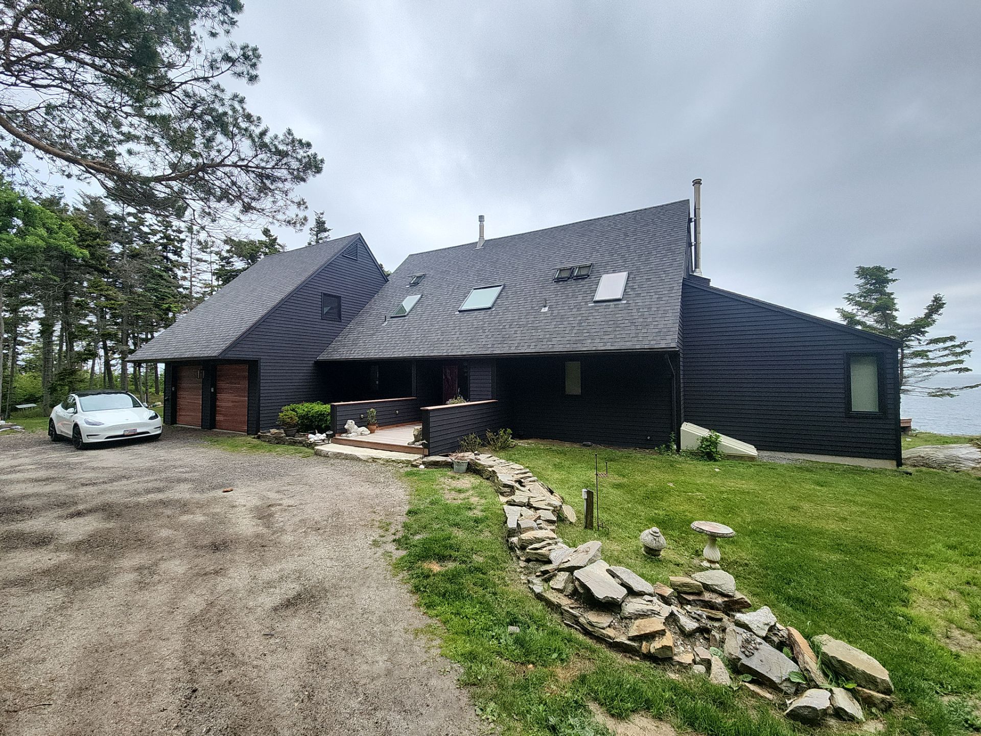 The homeowner requested a low-sheen, modern finish and selected a uniform Black Magic color for both body and trimโminimizing contrast lines and reducing visual clutter.